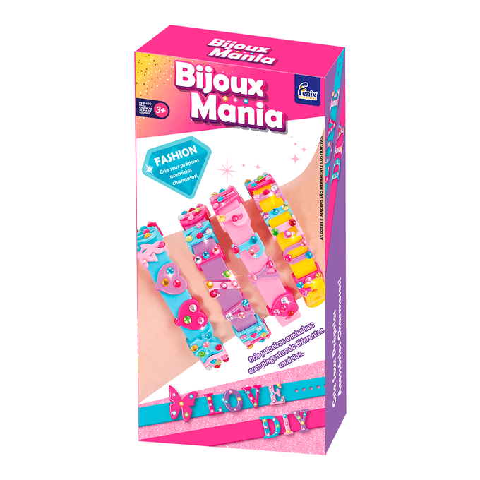 Contém: 2 Cartelas de Jóias, 4 Braceletes, 4 Cartelas de Letras.