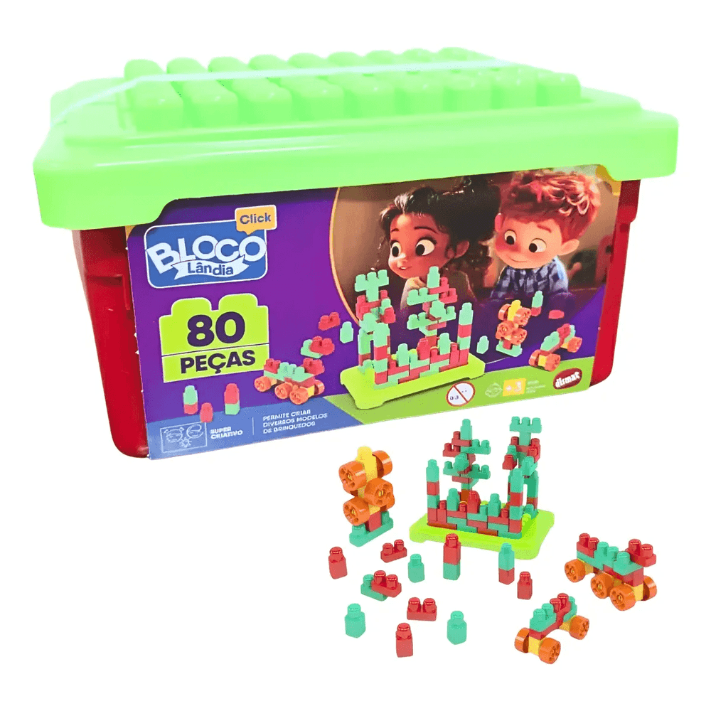 Blocos de Montar - Box Block Click com 80 Peças - Dismat