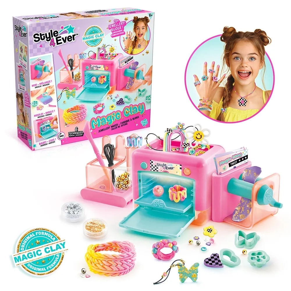 Crie Pulseiras, Anéis, Colares e Pingentes Usando Uma Massinha Mágica Que Seca Ao Ar em Apenas 3 Minutos. É Só Modelar, Colocar No Forno de Brinquedo e Ver Sua Joia Ficar Pronta para Brilhar! com Mais de 20 Ideias para Montar, o Kit Vem com Ferramentas Completas, Moldes Temáticos, Extrusora e Compartimentos para Organizar Miçangas, Glitter e Acessórios.