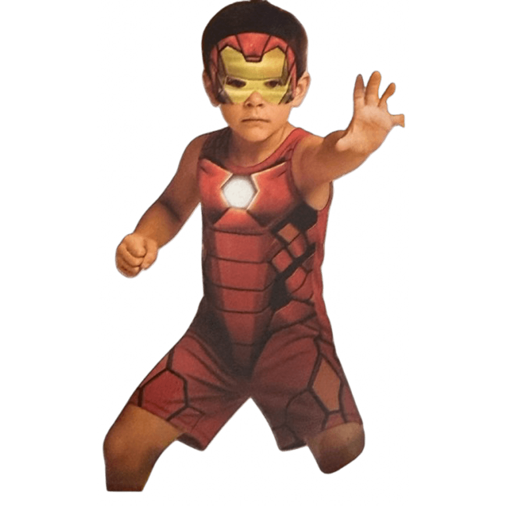 Fantasia do Super Herói Avengers Homem de Ferro, Personagem da Marvel, Versão Básica, Macacão Curto e Regata em Tecido 100% Poliéster. Acompanha Máscara.