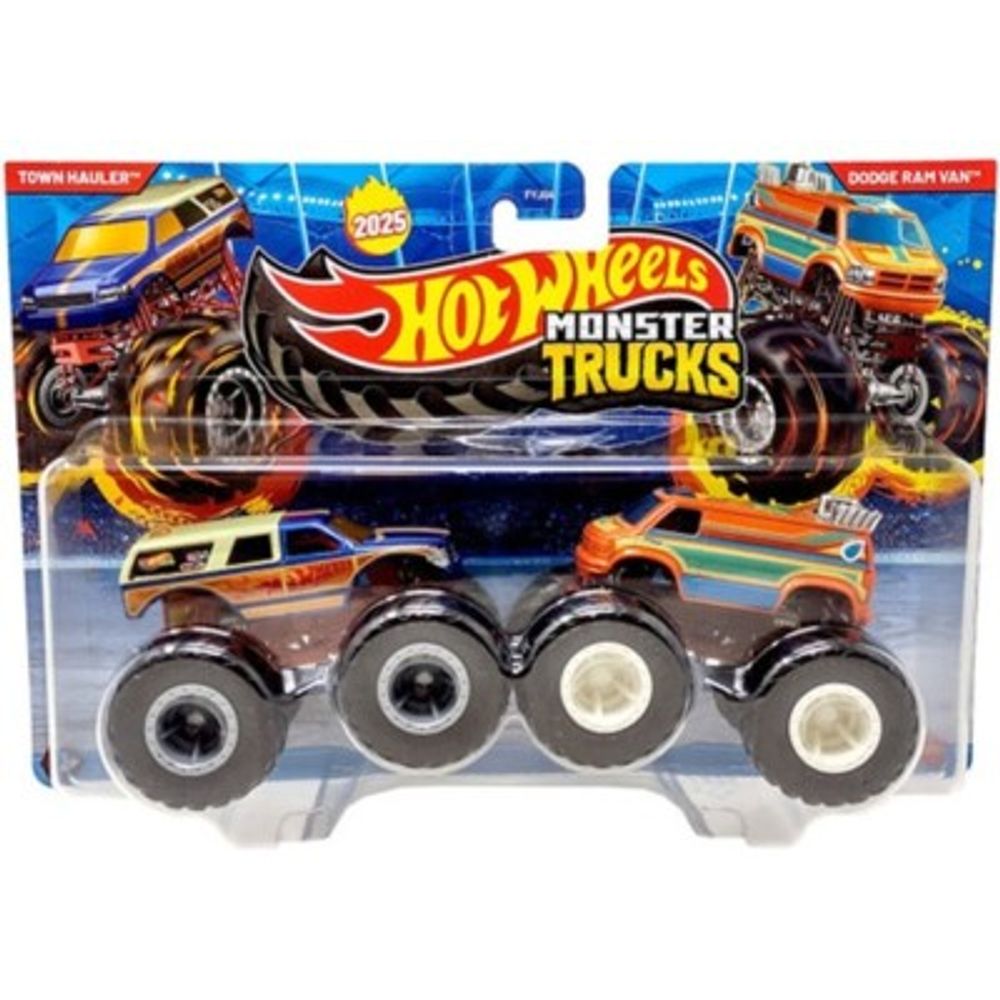 Hot Wheels - Monster Trucks 1:64 - Pack com 2 - Town Hauler Contra Dodge Ham Van da Mattel.
