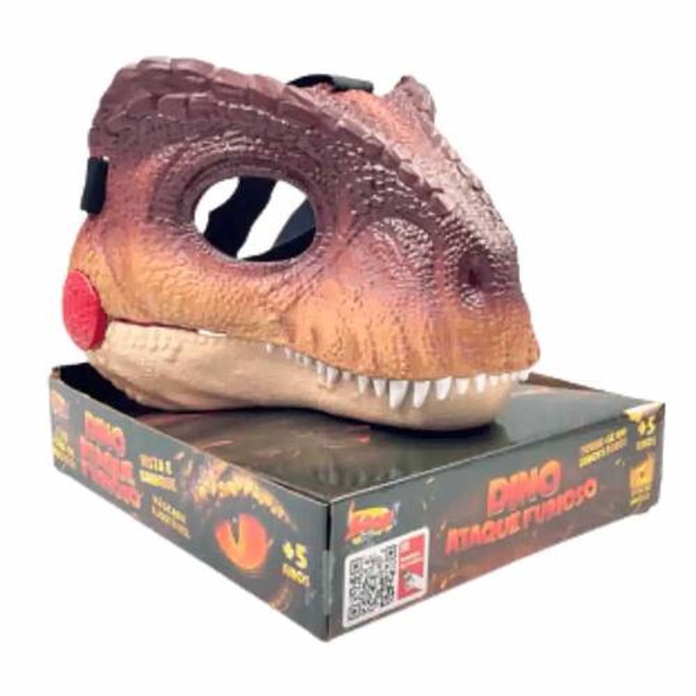 A Máscara Dino Ataque Furioso É Irada! Possui Cinto e Velcro Que Se Ajustam Na Cabeça, Mobilidade da Mandíbula, com Sons de Rugido de Dinossauro Ao Abrir a Boca.