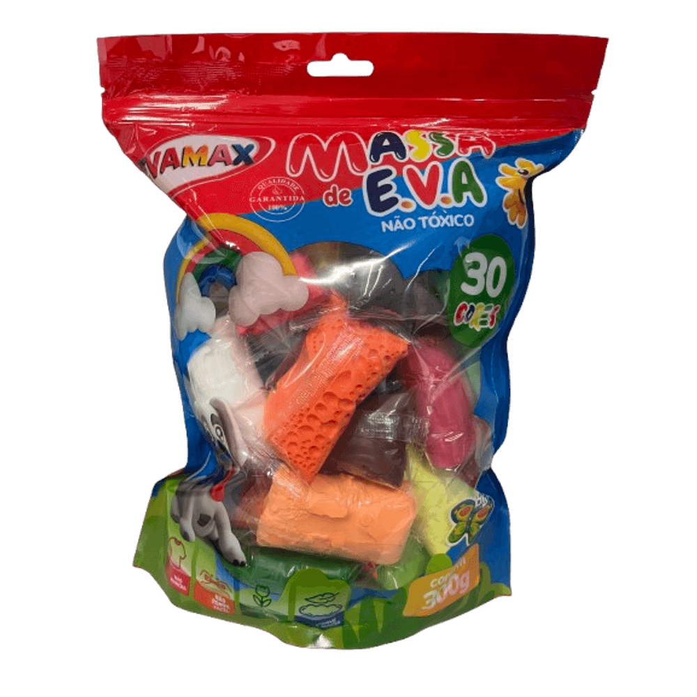 Contém: 300 Gramas de Massa E.V.a com 30 Cores Sortidas.