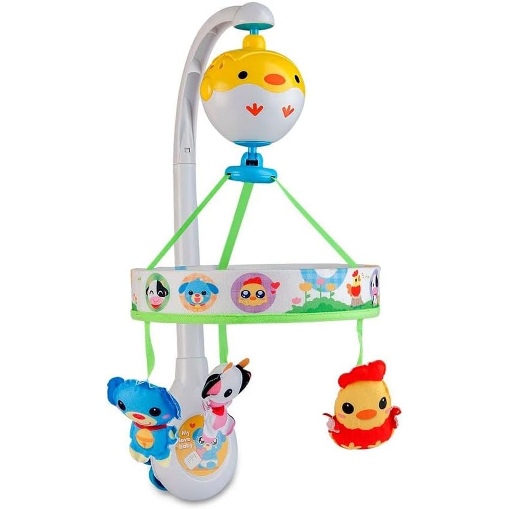 Móbile para Prender No Berço com 3 Modos Diferentes: Música e Rotação, Somente Música ou Somente Rotação. o Pintinho Toca Música!