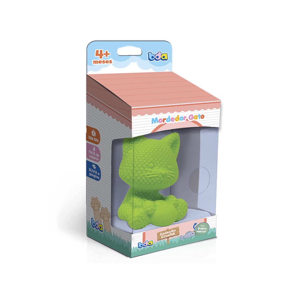 O Mordedor Crochê Gato, É Macio e Todo Texturizado. Divertido e Seguro para o Bebê.