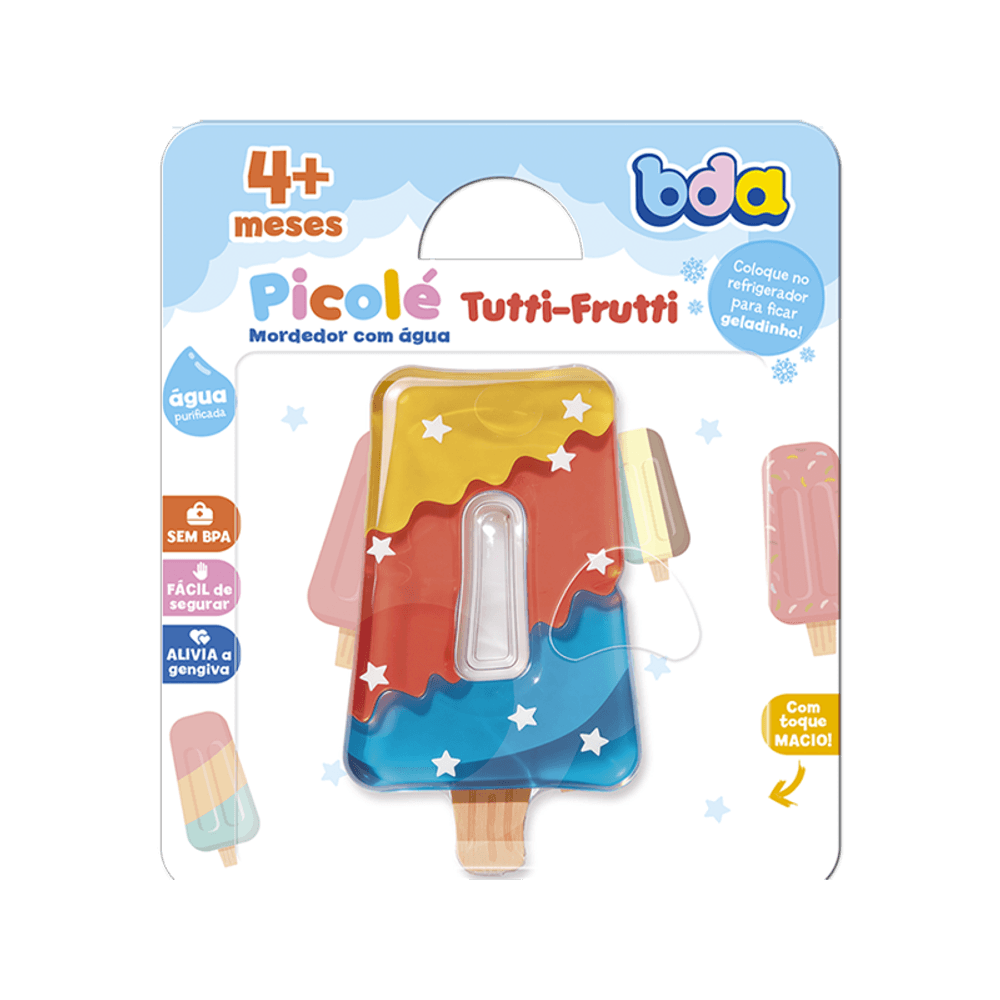 Mordedor com Água No Formato de Picolé Tutti-Frutti. Ele É Seguro para o Bebê e Não Contém Ftalatos.