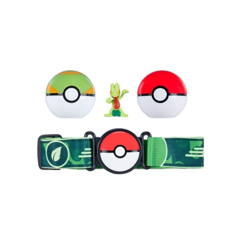 Transforme-Se em Um Treinador Pokemon com o Clip 'n' Go Poke Ball Belt Set! o Conjunto Inclui Um Cinto Ajustável com Um Design, 2 Pokebolas e Uma Figura de Treecko de 5cm de Altura. o Cinto Segura Até Seis Bolas de Pokemon de Uma Só Vez.