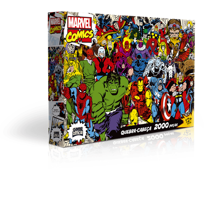 quebra-Cabeça Marvel Comics com 2000 Peças Para Você Encaixar Uma a Uma Até Formar Uma Imagem Incrível.